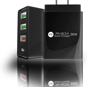 • QAISE USB-C Charger – Triple 36W USB Wall Charger with PD Charger – 3.0 Quick Charging Block – 20Watt Type-C USB Charger Station with LED Indicator – Multi-Port Power Adapter for Phone, Laptop, Tablet
