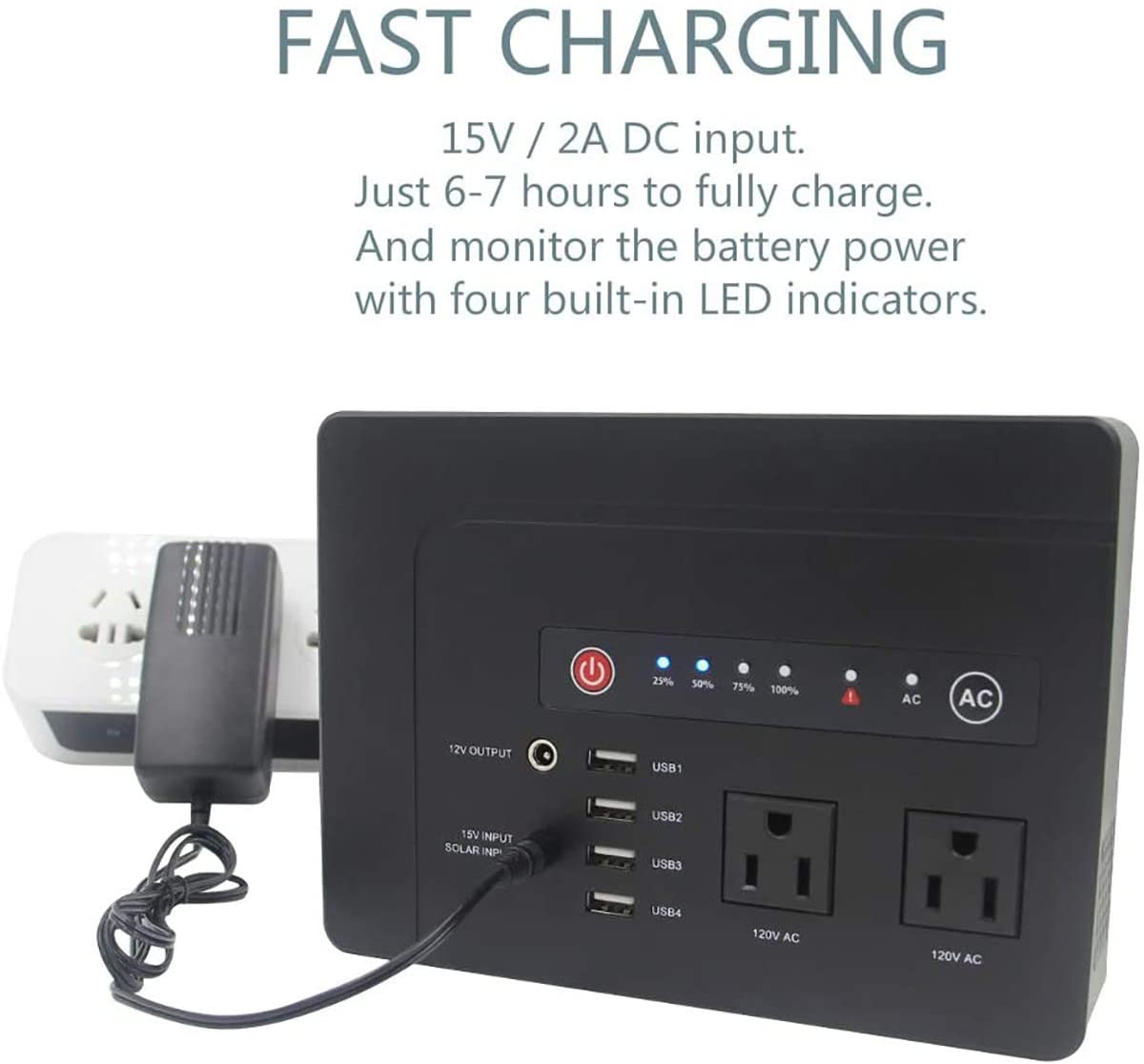 200Watt Portable Power Bank with AC Outlet for Camping 42000mAh Power Supply for CPAP, 2 AC Ports, 4 USB Ports, 2 DC Ports…