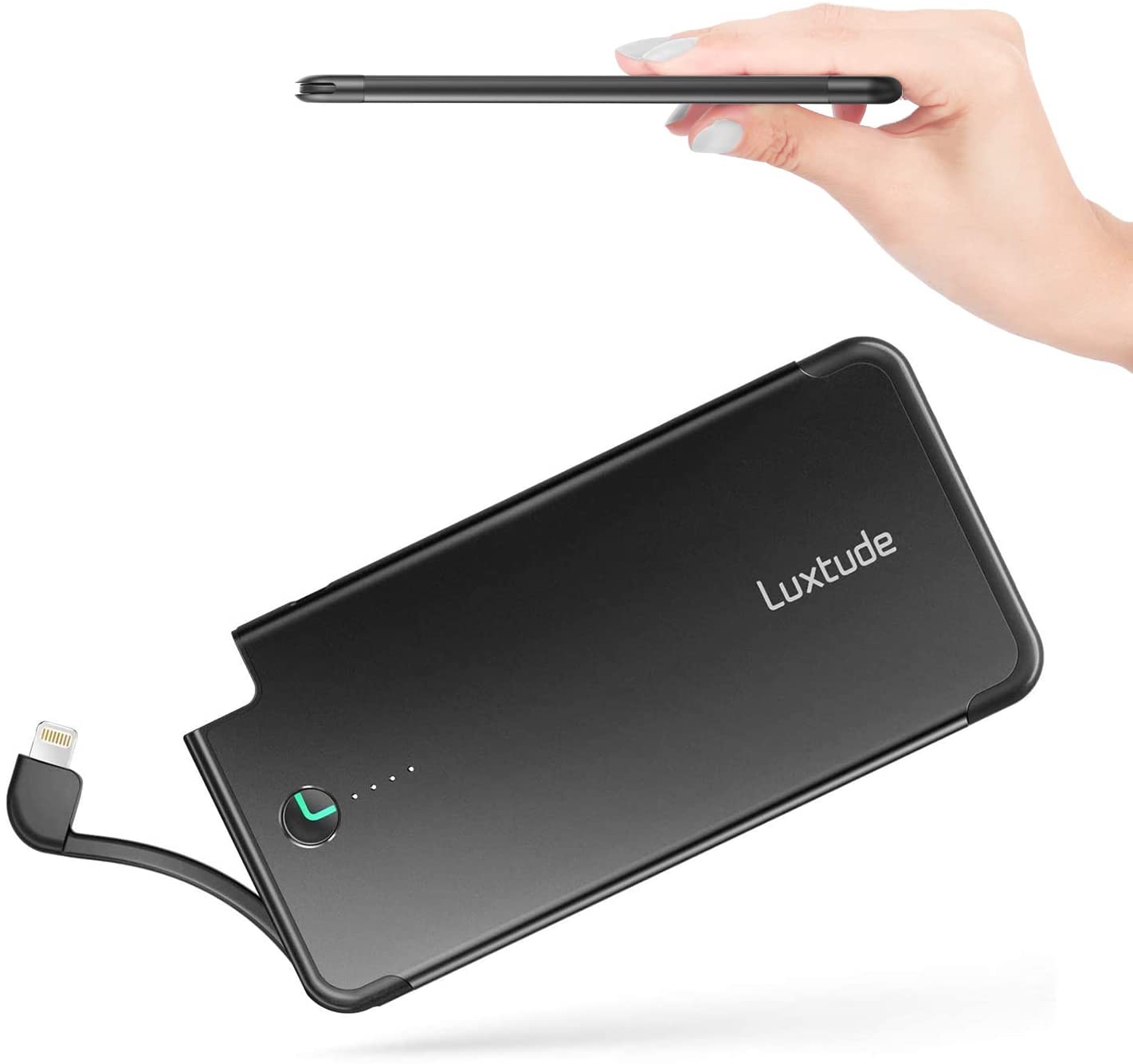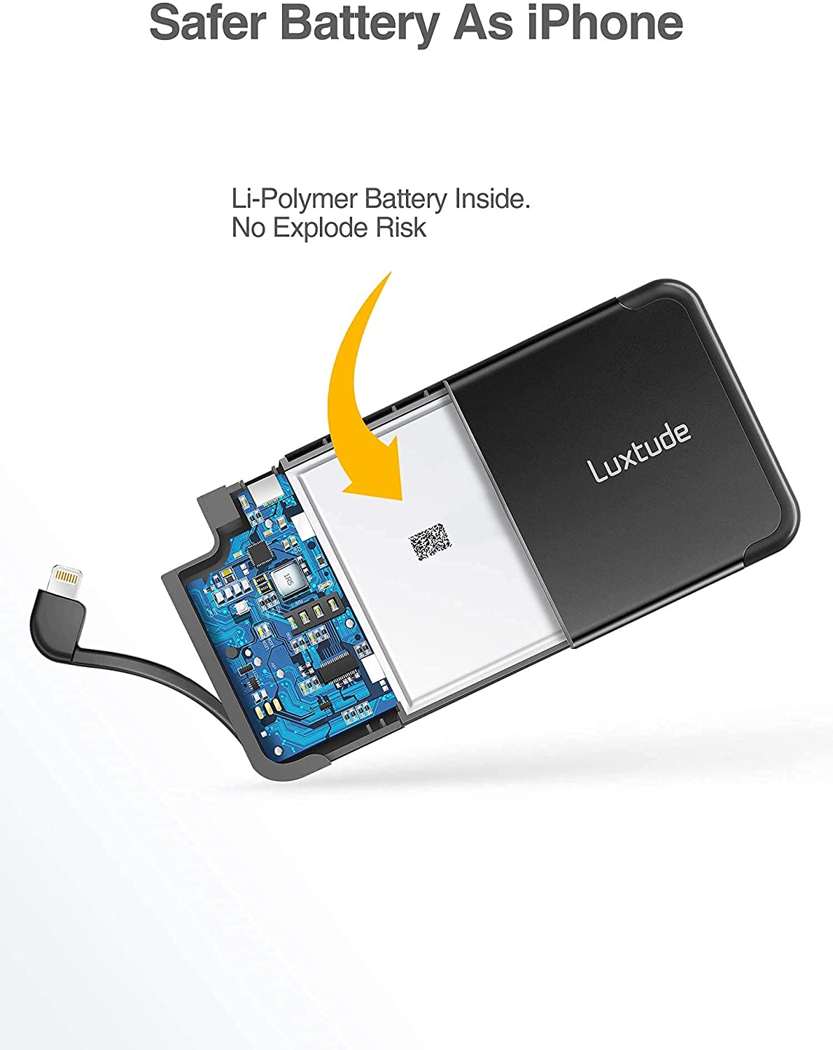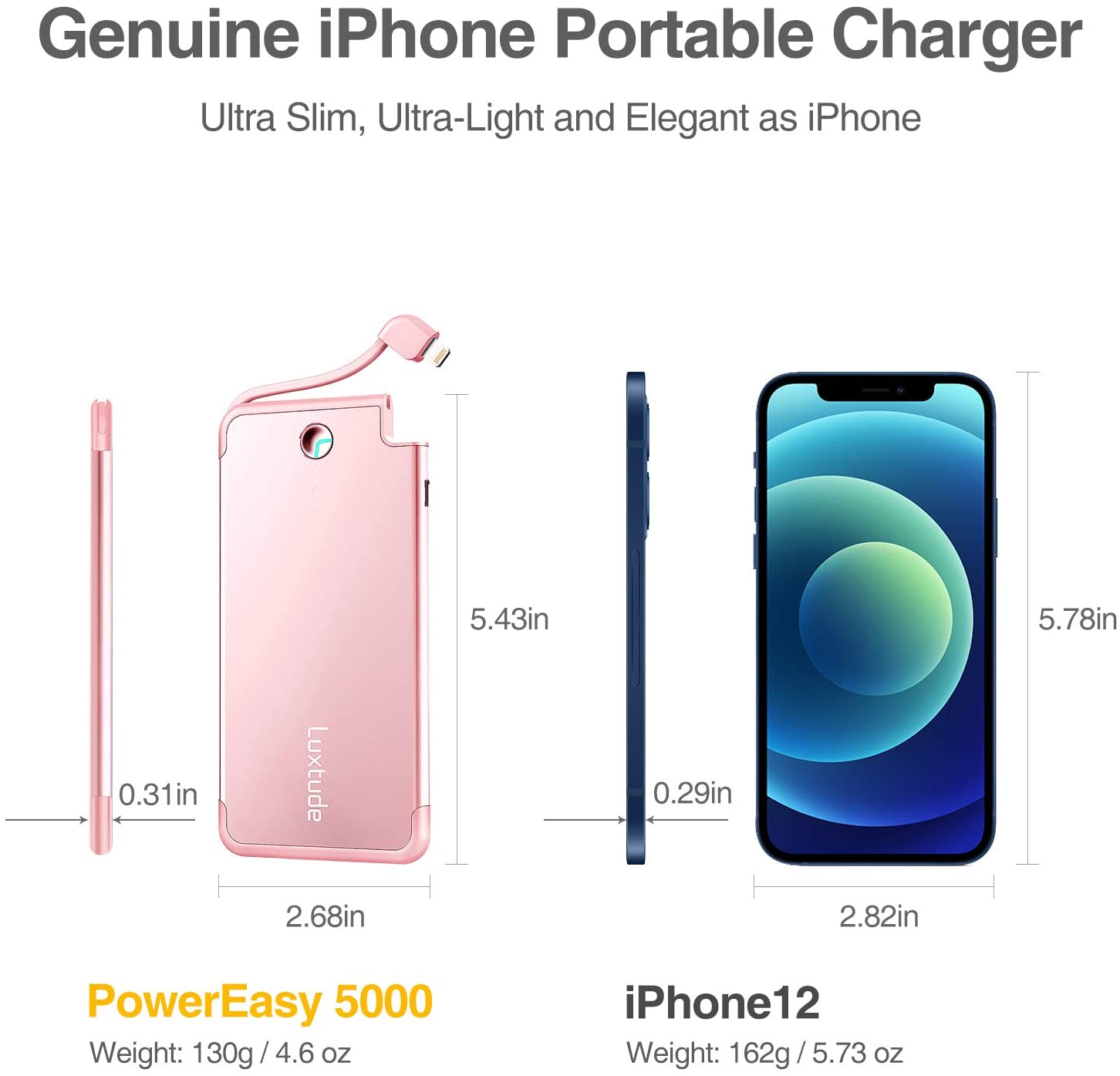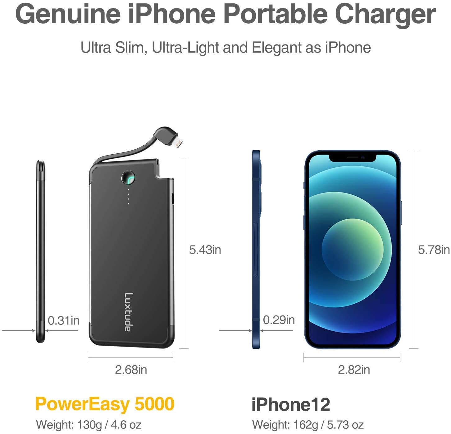 Luxtude 5000mAh Portable Charger for iPhone, Ultra Slim Mfi Apple Certified External Battery Pack Built in Lightning Cable, Fast Charging Power Bank for iPhone 13/12/11 Pro/X/XR/XS Max/10/8/7/6S etc.
