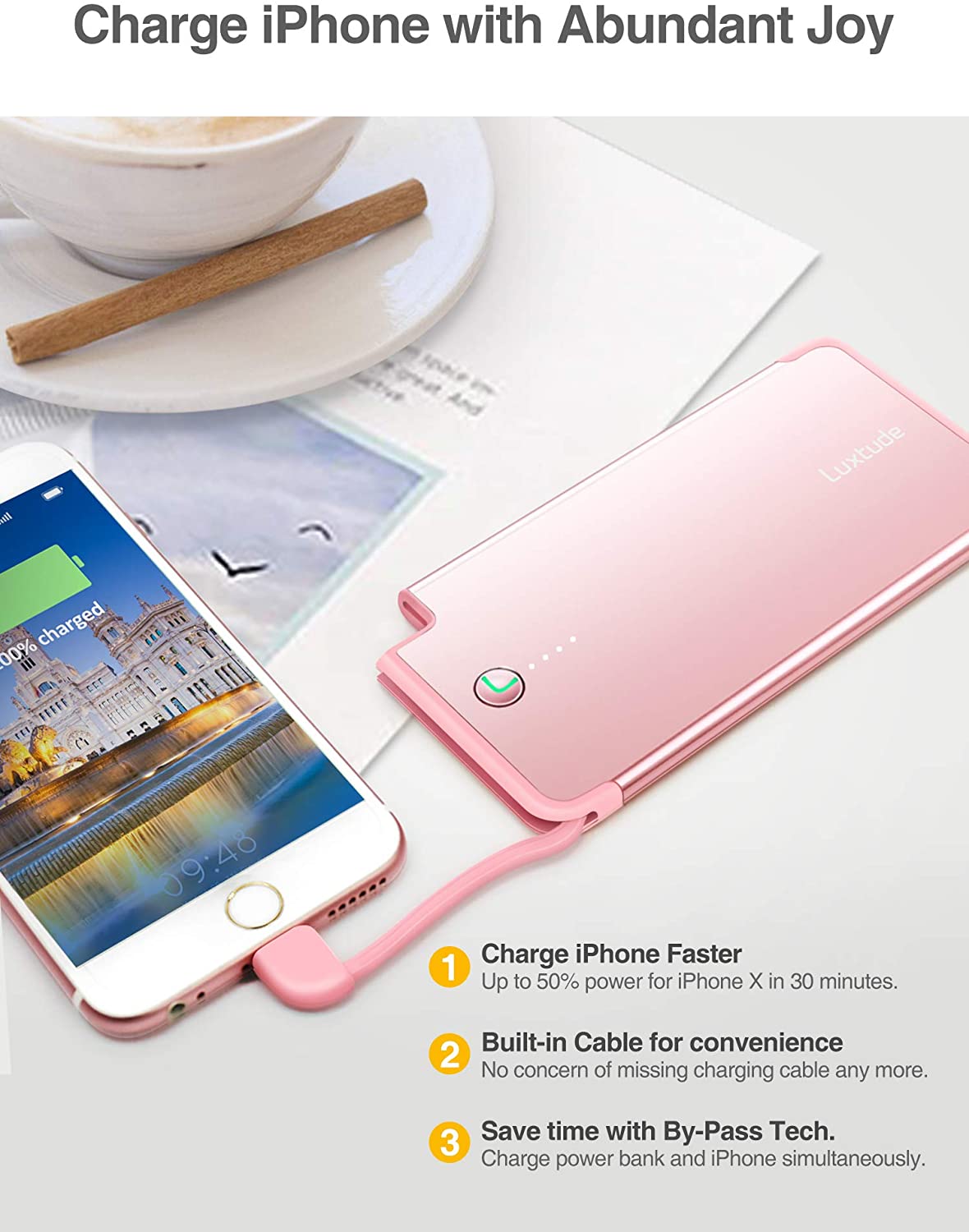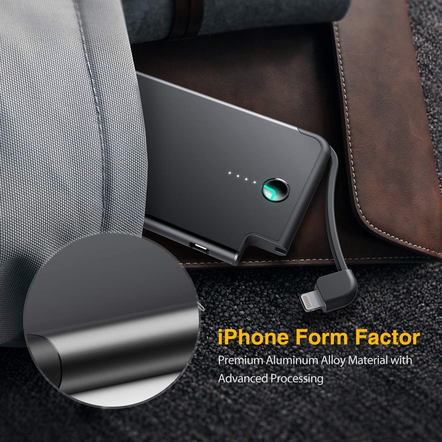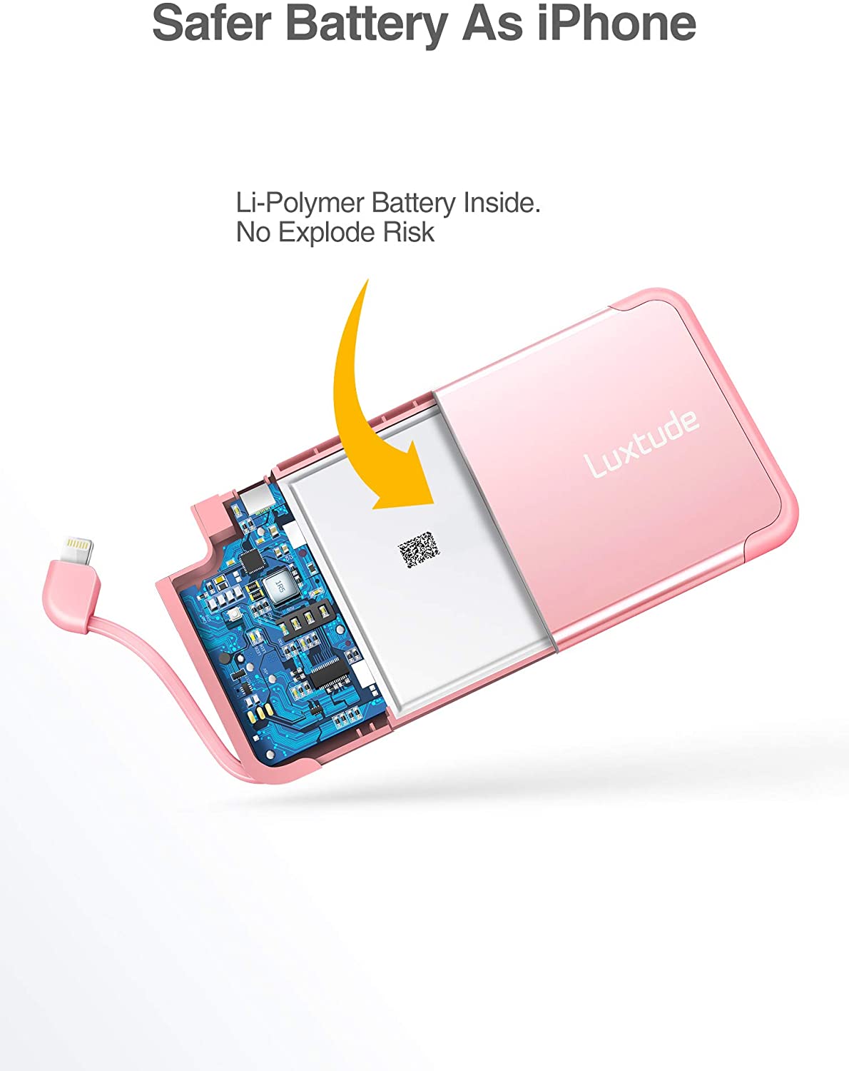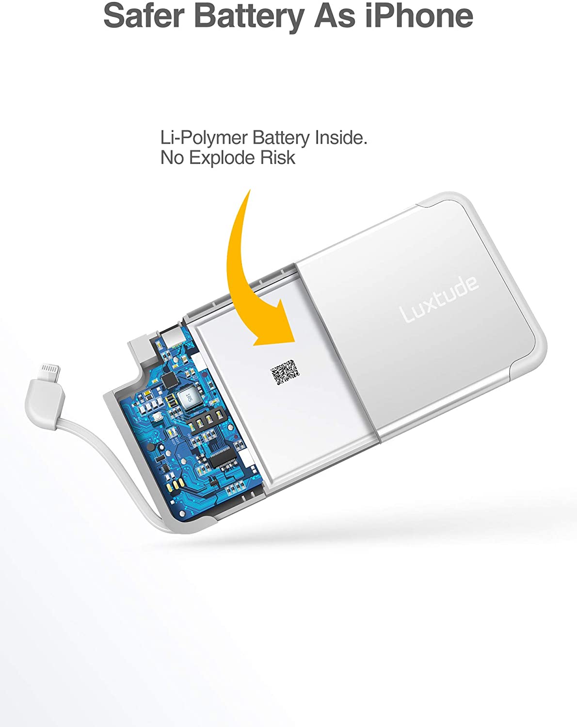 Luxtude 5000mAh Portable Charger for iPhone, Ultra Slim Mfi Apple Certified External Battery Pack Built in Lightning Cable, Fast Charging Power Bank for iPhone 13/12/11 Pro/X/XR/XS Max/10/8/7/6S etc.