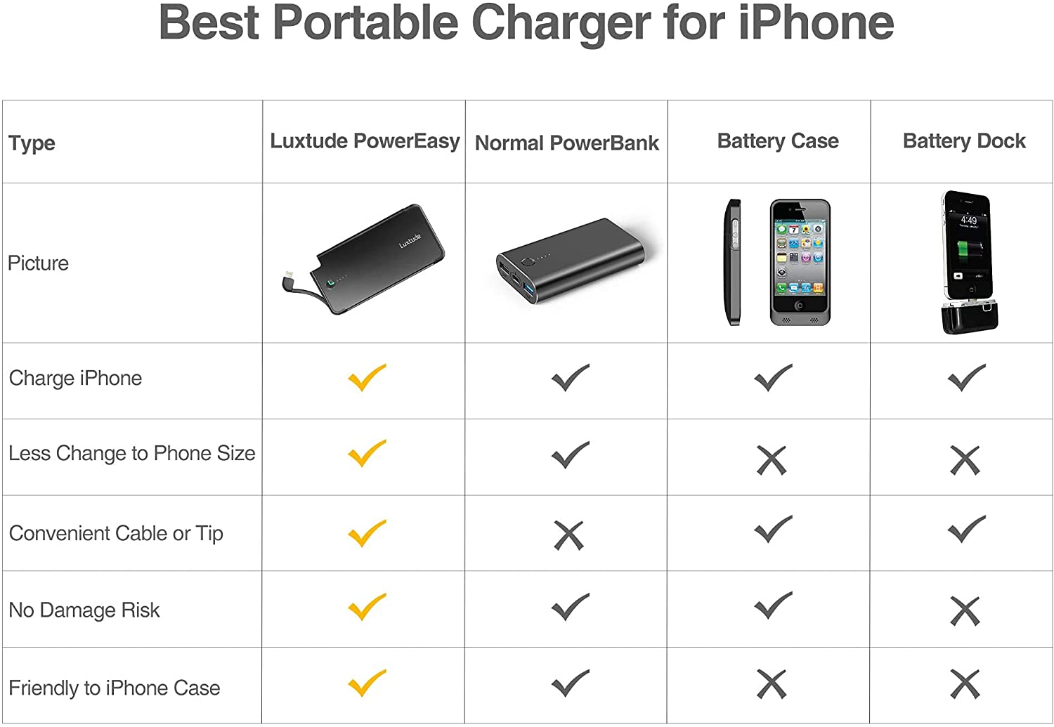 • ✔ APPLE CERTIFIED: PowerEasy 5000 is the portable charger for iPhone certified by Apple, matching MFi specification strictly. It’s the power bank for iPhone 13, 12 Pro Max,12 Pro, 12, 12 Mini, 11 Pro Max, 11 Pro, 11, XS Max, XS, XR, X, 8 Plus, 8, 7 Plus, 7, 6s Plus, 6s, 6 Plus, 6, 5, SE, etc. NOT FOR ANDROID cell phones.